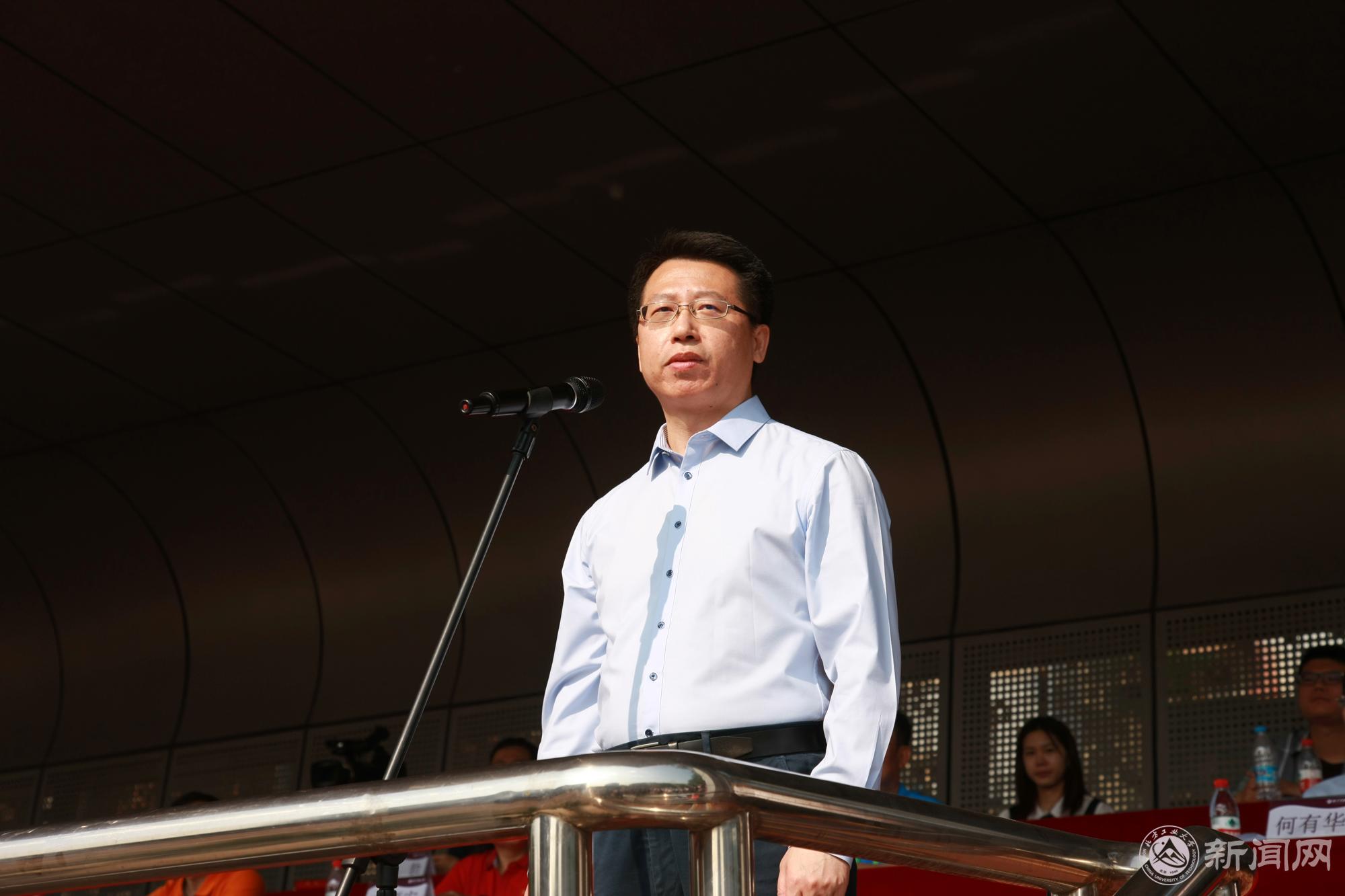党委常委、副校长王建稳致开幕词。他表示本次运动会召开于喜迎中国共产党建党100周年,“十四五”规划起步开局,冬奥筹办决战决胜之际,是青春梦想与伟大时代的交融,是青春激情与体育精神的交融,是青春风采与工大魅力的交融。北方工大人将以本届田径运动会为契机,深入推进体育教学育人改革,完善改进学校体育工作,带动促进学校体育教学工作实现新突破、迈向新台阶,为高水平应用型大学建设注入持久动力,以优异成绩迎接建党100周年。