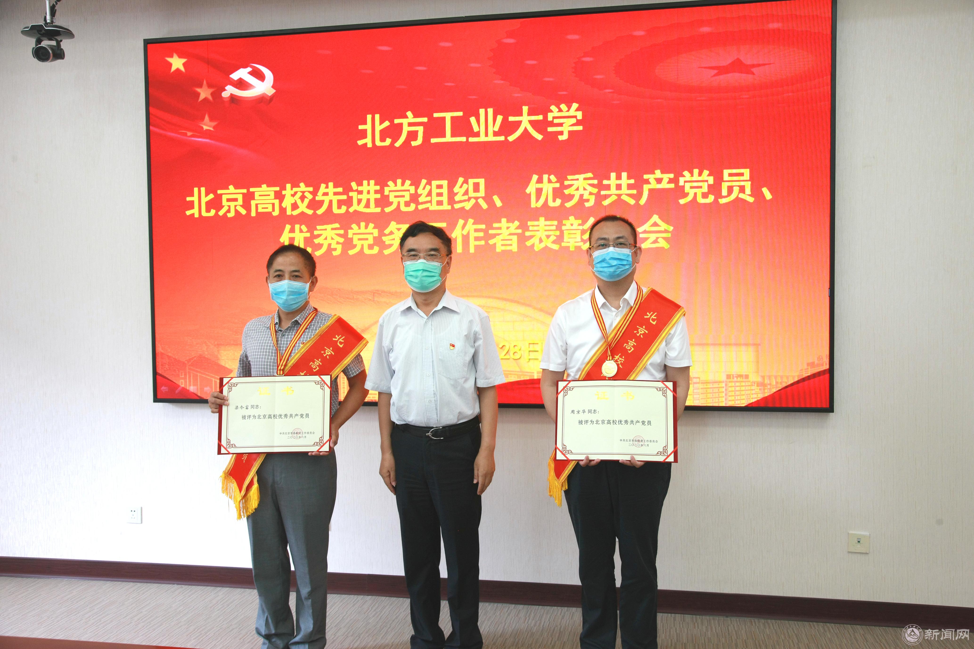 党委书记郑文堂为北京高校优秀共产党员周京华、梁令富颁奖
