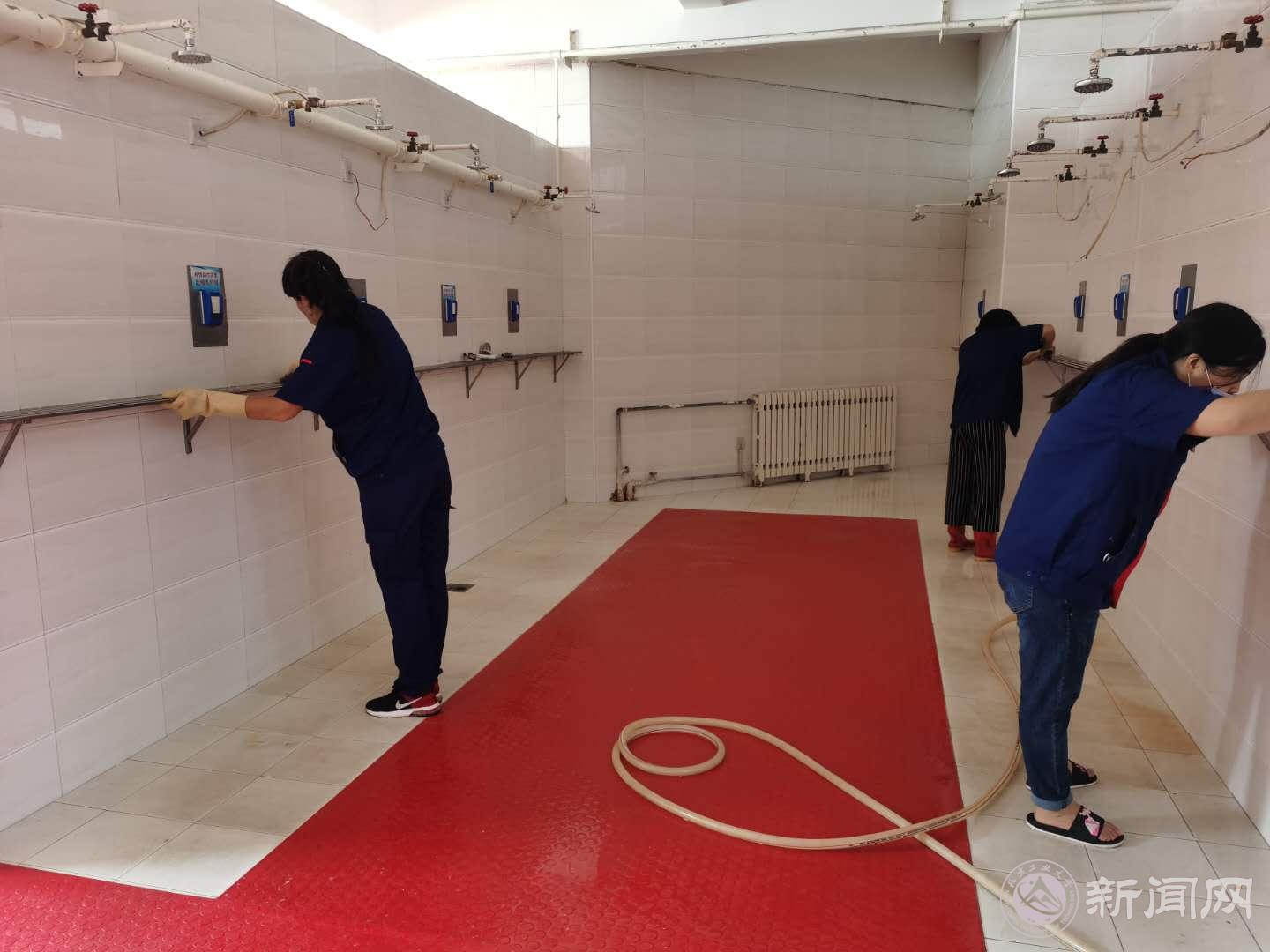 未雨绸缪,做好校园基础设施修缮。在暑假期间对新生房间内的设备设施进行全面的检修,对永利官网2#、3#高压配电室进行高压设备安全预防性检测试验,对全校的路灯、草坪灯、壁挂灯、景观灯、喷泉、开水器、二次供水、污水提升泵进行全面检修。对浴室进行了墙面粉刷并粘贴瓷砖,每天对浴室进行两次全面消杀,并将开浴时间提前2小时满足师生洗浴要求,制定《防疫期间公共浴室预约服务指南》,指导学生合理安排洗浴时间,通过预约小程序实现人员分流、分时段、不聚集。对路面进行集中检修,维修路面面积约120㎡,对标识标线、车位线进行了全新粉刷,粉刷标线面积约600㎡。